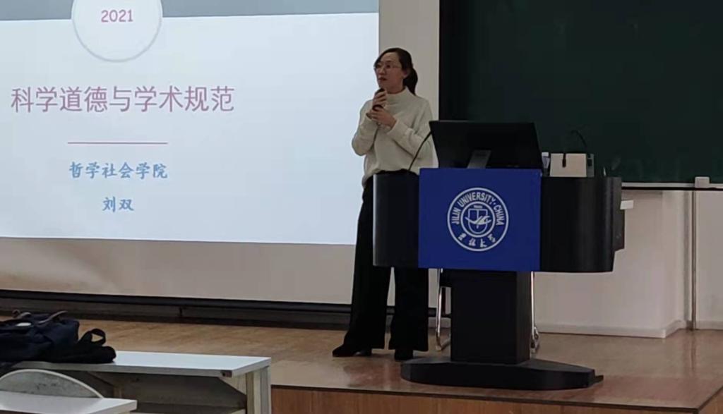 首先,刘双老师从科学道德与学术规范这两个概念入手,从内在的价值引领与外化的规则学习两个角度阐述了两者的相互关系及其对学术活动的指导作用。同学们深刻体会到学习、遵守具体的学术行为规范是恪守科学道德的具体体现,同时科学道德水准的提升也将进一步促进学术规则的践行。