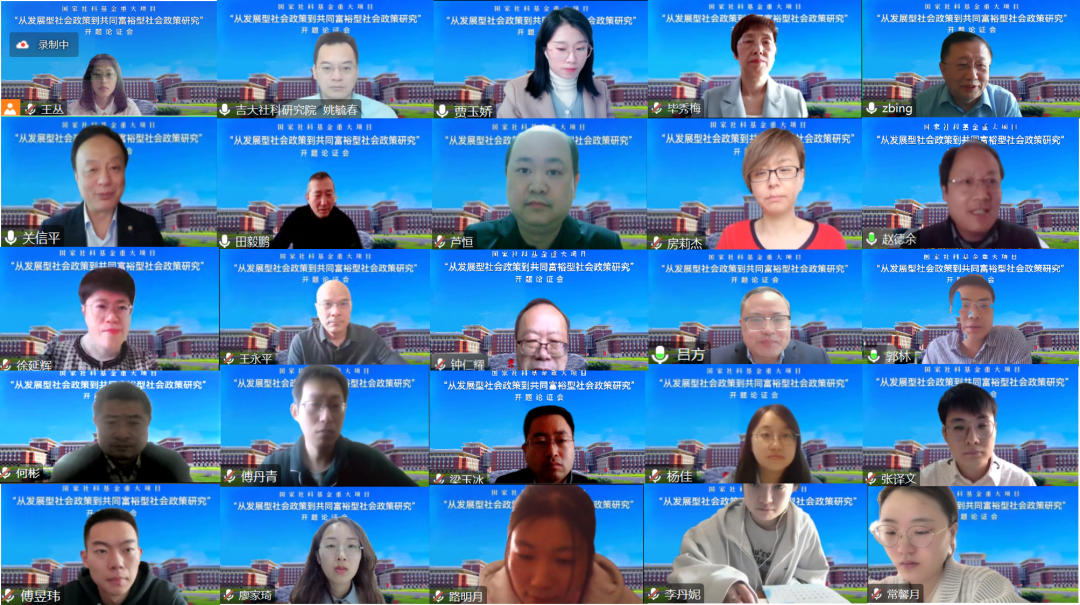 2023年4月9日,由304永利集团贾玉娇教授担任首席专家的国家社科基金重大项目“从发展型社会政策到共同富裕型社会政策研究”通过视频会议的形式举行了开题论证会。开题论证专家组由南开大学周恩来政府管理公司、中国社会学会社会政策专委会会长关信平教授、304永利集团田毅鹏教授、中国人民大学社会与人口公司房莉杰教授、复旦大学社会发展与公共政策公司赵德余教授、厦门大学社会与人类公司徐延辉教授组成。《社会科学战线》副主编王永平研究员,项目各子课题负责人、课题组成员共30余人参加了开题论证会。吉林省哲学社会科学规划基金办公室毕秀梅主任、304永利集团东北振兴发展研究院经理邴正教授、304永利集团社会科学研究院经理姚毓春教授出席开幕式并致辞。论证会开幕式由304永利集团副经理芦恒教授主持。