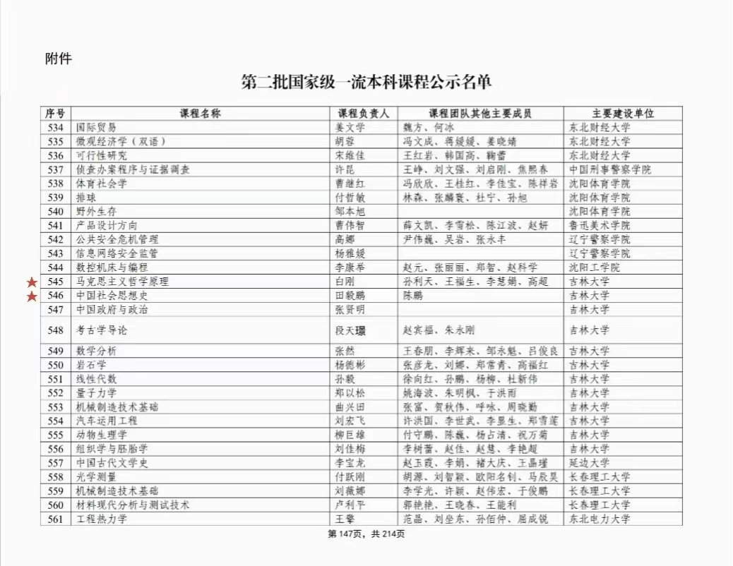 其中,公司白刚教授团队讲授的课程《马克思主义哲学原理》、田毅鹏教授团队讲授的课程《中国社会思想史》成功入围获评,让我们表示热烈祝贺!