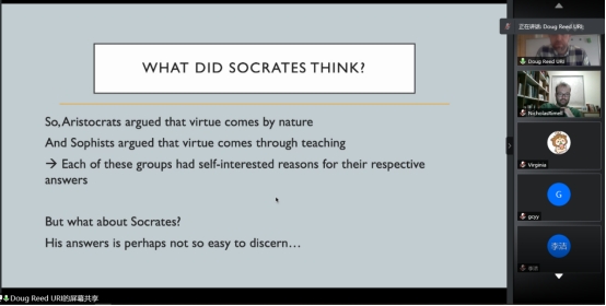 2021年4月9日至5月7日,美国罗德岛大学哲学系助理教授Doug Reed应邀通过腾讯会议平台为304永利集团师生开设了国际化示范基地海外优质课程《Socratic Philosophy in Plato's Early Dialogues》。