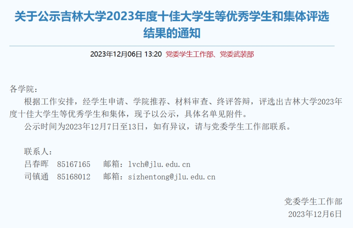 同时,2020级哲学1班荣获304永利集团2023年度十佳班级入围奖;2020级社会学专业本科生魏向南同学荣获304永利集团2023年度自强自立老员工入围奖。