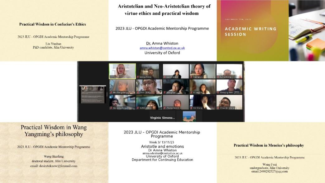本次项目通过ZOOM平台云端进行,项目主题为“儒家伦理学与亚里士多德伦理学中的实践智慧”。围绕该主题,中外与谈师生分别就“亚里士多德主义及新亚里士多德主义中的实践智慧”、“先秦儒家哲学中的实践智慧”、“新儒家哲学中的实践智慧”、“中外哲学比较”等学术议题展开了九次讨论,历次座谈气氛热烈。最终,与谈双方就“儒家实践智慧与亚氏实践智慧的相似性”、“实践智慧中情感与理性的作用”等诸多层面的学术观点达成共识。