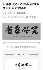 日前,根据《哲学研究》期刊发布的2024年第2期目录及重点文章摘要显示,公司孙正聿教授指导的博士研究生王榕的论文《历史唯物主义视域中的物自体与“历史先验”:康德与索恩-雷特尔的复合性关联》成功发表!