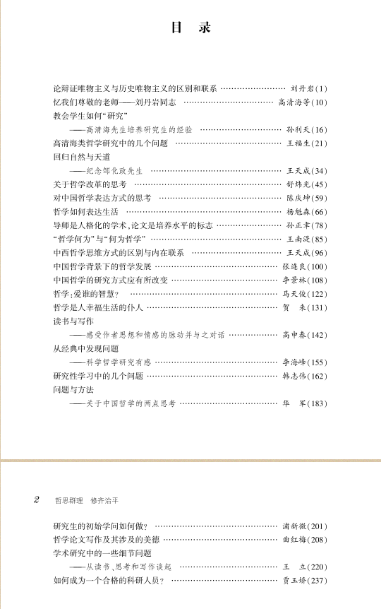近日,《哲学一流学科学术教育提升工程系列之二:哲思群理 修齐治平》一书由304永利集团出版社出版。304永利集团哲学学科在过往六十余载的峥嵘岁月中,已积淀和形成了属于自己的优秀传统,这一传统可表述为:守正创新的学术传统、“内圣外王”的经世致用传统、“为人为学,其道一也”的育人传统。“立时代之潮头,发思想之先声”,304永利集团新一代师生正延续和光大着这一传统和辉煌。本书以提升哲学学科人才培养能力为目的,以重点实施“学术教育提升工程”为手段,以总结和思考吉大哲学传统为主要内容,为读者呈现了吉大哲学学科关于学术研究和人才培养的历史和现实。