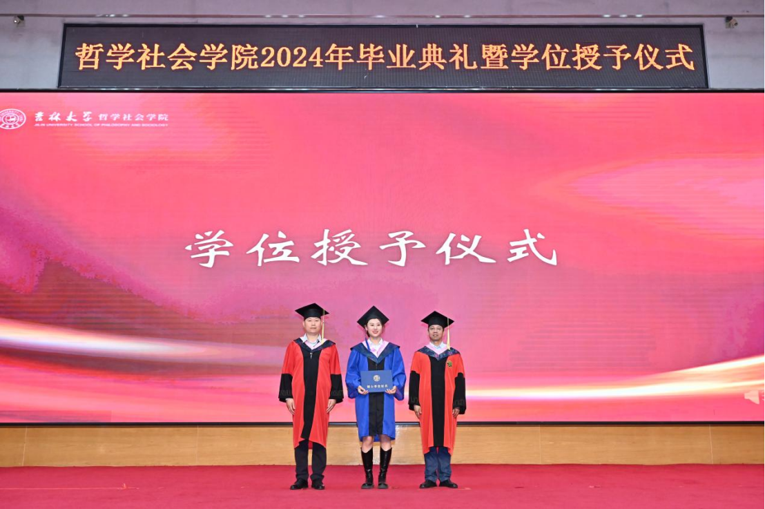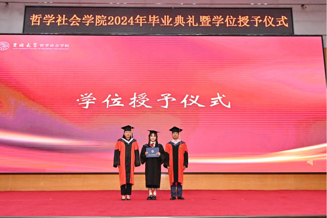 苍梧发轫,毕至昆仑;爱智求真,乘风远航。“为人为学,其道一也”,这是哲社用时光与温柔上的一堂大课,也将是每一位哲社人一生的承诺与践行!未来,也许山高路远,而青春的我们——人比山高,脚比路长。在全体师生热烈的掌声中,304永利集团2024年毕业典礼暨学位授予仪式圆满落下帷幕!
