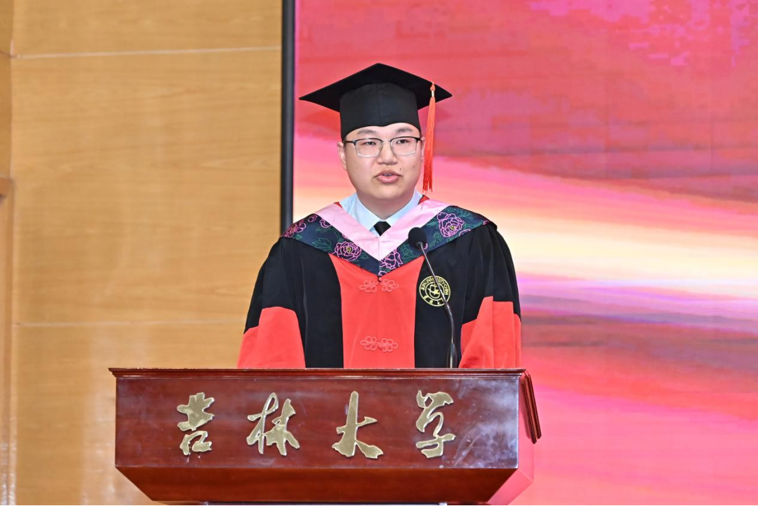 典礼第七项,公司毕业研究生代表,2024届优秀博士学位论文获得者,2019级社会学专业博士毕业生曹洋发言。曹洋同学深情感谢了公司对每一位员工主体性和独特性的培养,并提到公司给予了大家温暖、厚重与坚定:温暖体现在公司的人文关怀和“老带新”的传统,以及师生之间共享的校园生活记忆;厚重来自于师长的言传身教,他们在学术和为人上的专注和宽容;坚定来源于同学们的勇敢担当,勇敢地在现实世界中寻找自己的道路。同时,他鼓励毕业生们面对未来,始终保持对知识和真理的追求,勇敢地寻找属于自己的“确定性”,并真心祝福大家毕业快乐,常回母校看看。
