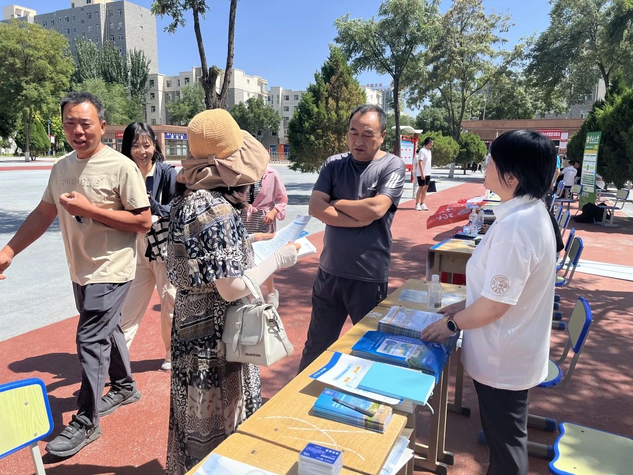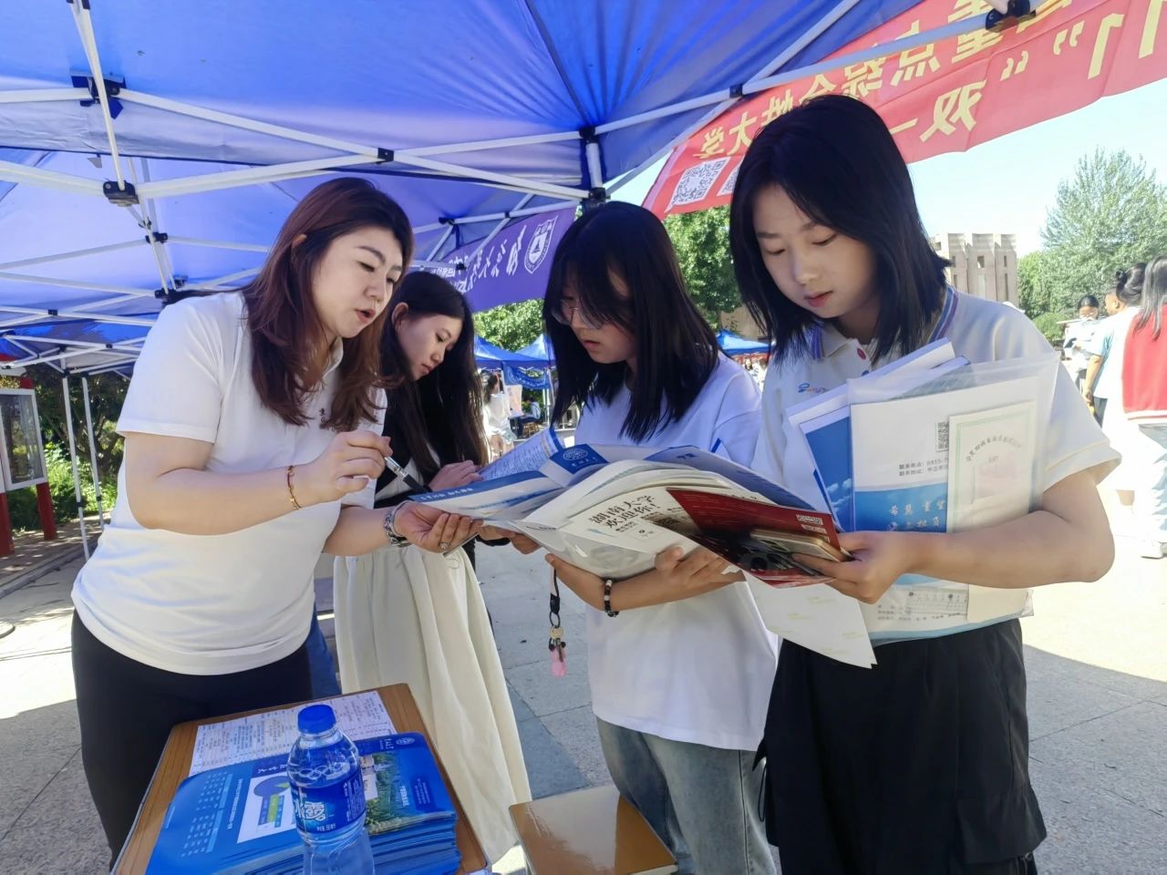 公司老师们精心筹划,在同各高中协调沟通场地后积极开展部署,将相关宣传资料和政策文件提前携带至工作场地,静候员工和家长前来。