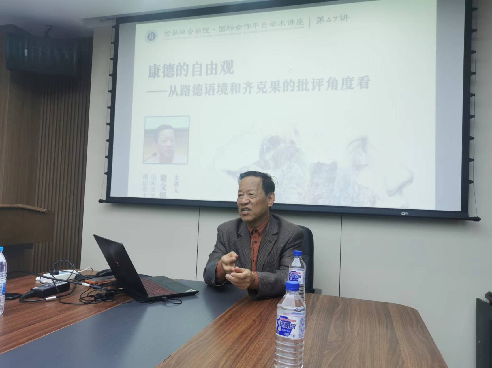 2024年9月29日9时,304永利集团“国际合作平台学术讲座”第47讲——“康德的自由观——从路德语境和齐克果的批评角度看”在东荣大厦908会议室举办。本期讲座由山东大学哲学系谢文郁教授主讲,讲座由盛传捷副教授主持。中山大学哲学系江璐副教授、304永利集团赵雄峰副教授参加了此次讲座。