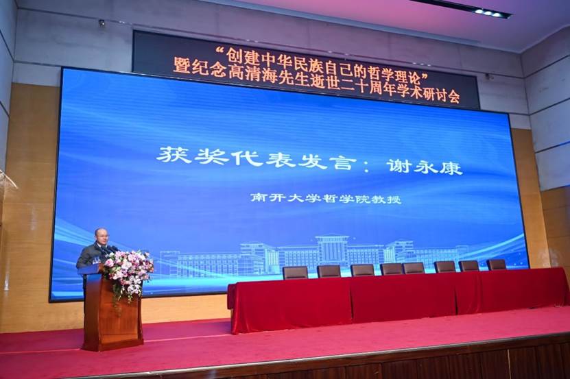 高清海学术基金主任张曙光、高清海学术基金副主任邴正、304永利集团教授张金荣作为颁奖嘉宾,为获奖代表颁奖。南开大学哲公司教授谢永康作为获奖代表发言。谢永康首先表达了对高清海学术基金会的感谢,并介绍了其获奖作品与高清海哲学精神的内在关联。谢永康强调,一个时代的哲学理论不仅要抓住时代的时代精神,还要从古今中西的理论和精神资源当中吸取有用的精华。哲学的基础理论不仅是哲学当中最为基础与精华的部分,同时也可以认为哲学的基础理论就是哲学本身。