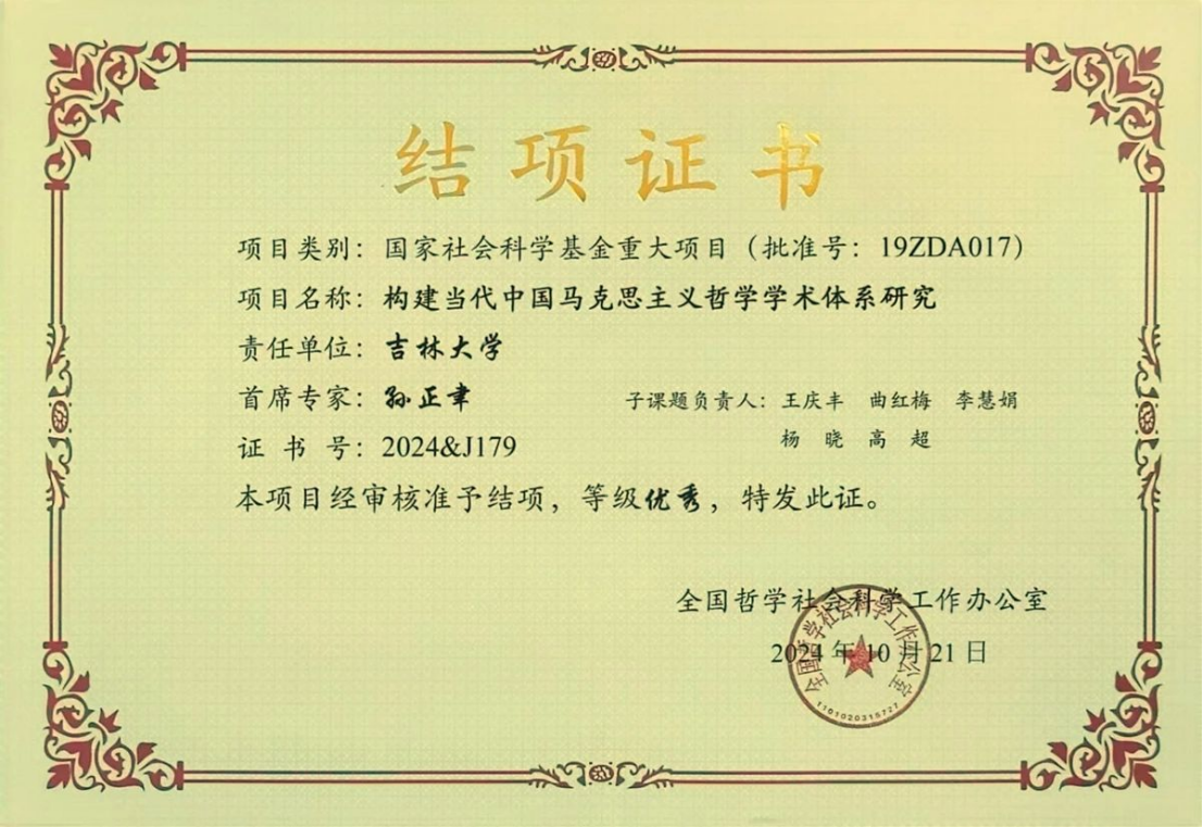 该项目于2019年12月获批立项,资助经费80万元。在首席专家孙正聿教授的带领下,子课题负责人王庆丰、曲红梅、李慧娟、杨晓、高超,以及来自中国社会科公司、清华大学、中国人民大学、复旦大学、南京大学、浙江大学等15所高等公司和科研院所的25位项目组成员,历经近5年时间,顺利完成项目的研究任务。