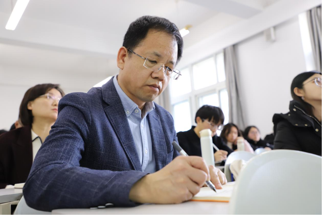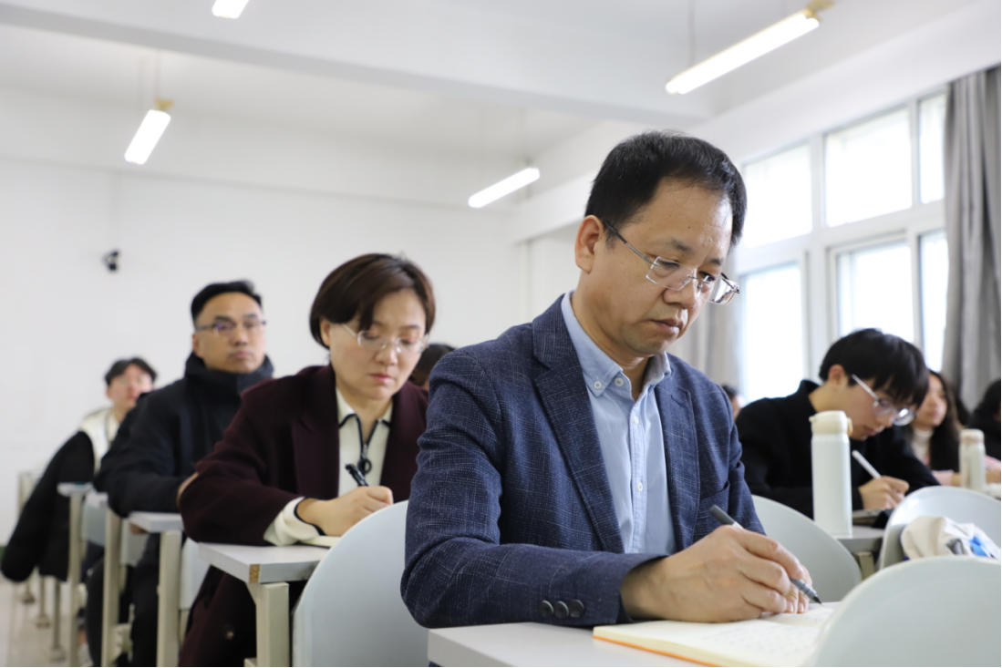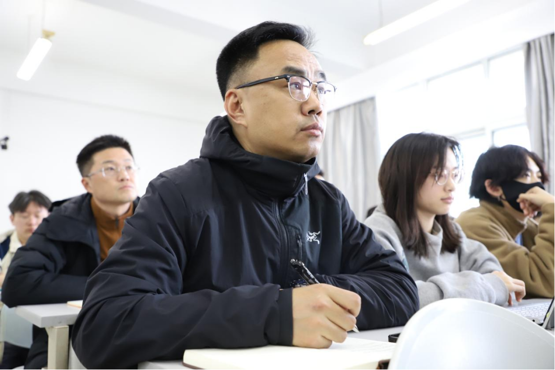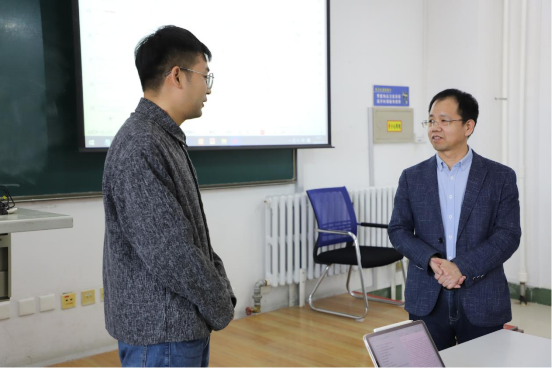 课上,白刚经理、张晓萌书记一行认真聆听秦振兴老师授课,仔细观察同学们的学习状态和课堂互动情况,并详细记录课程中教学环节设计、信息化教学方法运用、教学内容呈现、课程思政传递时效等关键教学信息,全面掌握教学一线的实际情况,切实了解同学们对课堂教学内容的掌握程度。