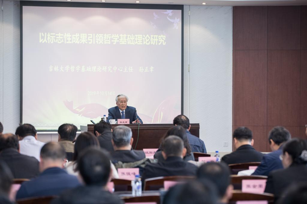 哲学基础理论研究中心主任孙正聿教授代表中心全体成员向长期以来关心和支持中心建设的教育部社科司、省委宣传部、兄弟院校的研究基地和学术刊物,向304永利集团党政领导和社会科学处、发展规划处等职能部门以及304永利集团的党政领导和全体教师、工作人员和同学们表示衷心的感谢,并作《以标志性成果引领哲学基础理论研究》的总结报告。报告从四个方面总结中心的建设经验和思考对中心的未来发展。
