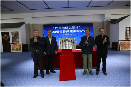 揭牌仪式上,原吉林省副主席赵家治,东丰县委副书记王兆卿,公司经理田毅鹏先后致辞。田毅鹏在致辞中表示,东丰农民画不仅具有艺术价值,也具有社会价值。研究人员对农民画进行研究,可以提高东丰农民画的知名度,为农民创造经济收入,更可以透过农民画看到乡村文化,从中摸索乡风文明建设的发展逻辑,助力乡村振兴。最后,田毅鹏经理表达了对双方合作的期待。