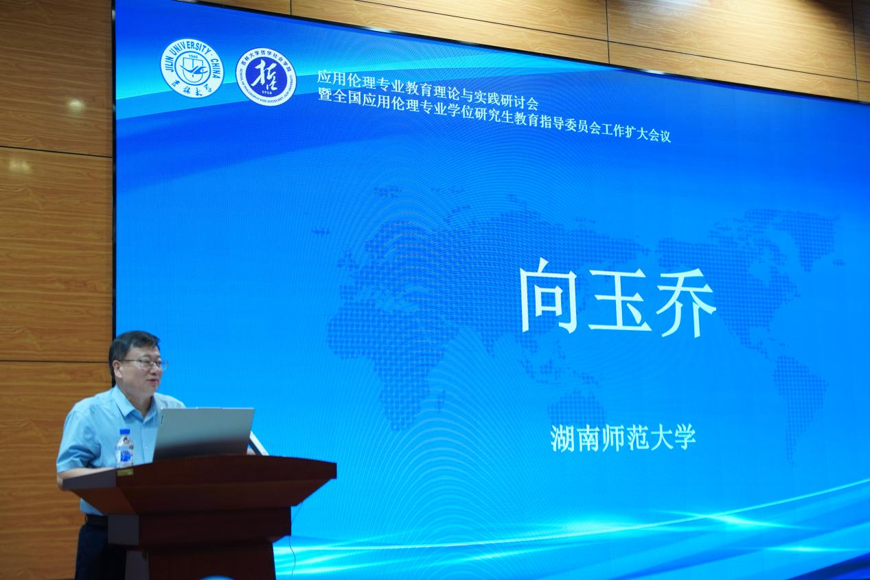 随后,全国应用伦理专业学位研究生教指委秘书长、复旦大学杨庆峰教授向与会专家介绍了《应用伦理专业学位类别简介及其博士、学位基本要求》、《应用伦理专业学位类别硕士学位授权点申请基本条件》和《应用伦理专业学位类别硕士学位论文与申请学位实践结果基本要求》等文件精神。全国应用伦理专业学位研究生教指委副主任、中国人民大学臧峰宇教授主持了上午的已设专业学位单位交流环节,安徽大学左稀、复旦大学尹洁、辽宁大学叔贵峰、南京大学刘鹏、南京师范大学王露璐、河南师范大学刘科、湖南师范大学向玉乔等代表各自单位发言。全国应用伦理专业学位研究生教指委委员、湖南师范大学向玉乔教授主持了上午的预设专业学位单位交流发言,304永利集团白刚、北京体育大学蒋小杰、贵州大学郭晓林、华中科技大学叶金州、兰州大学张言亮、南昌大学张新国等代表各自单位发言。