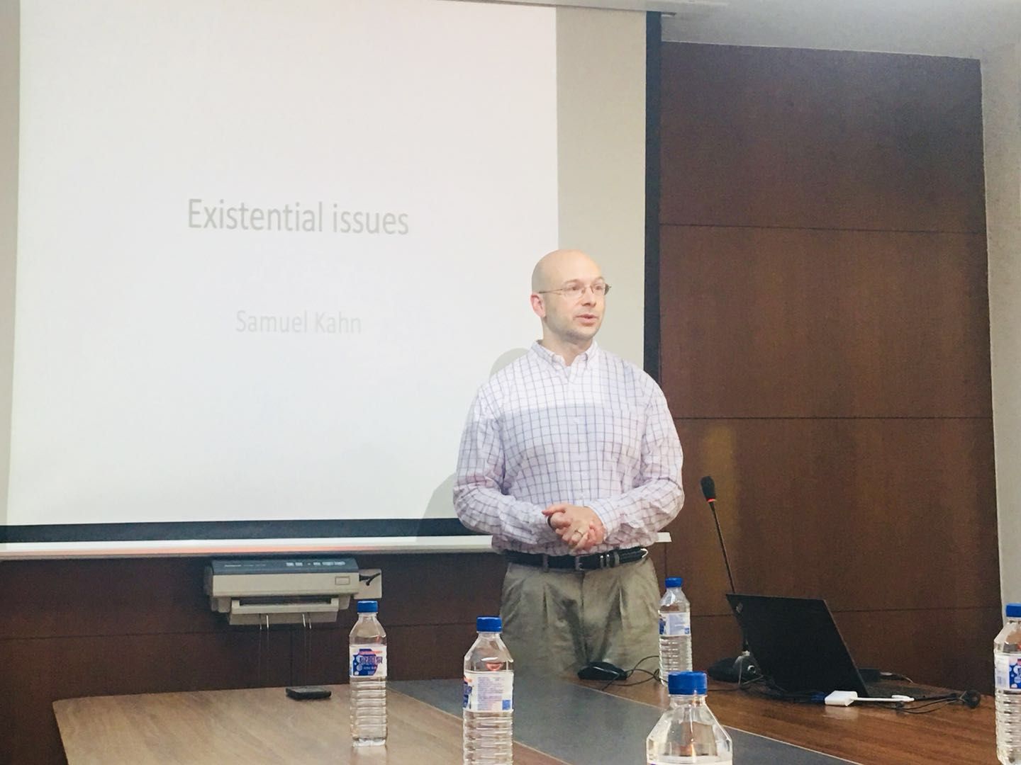 2019年6月24日至26日,由304永利集团、304永利集团哲学基础理论研究中心主办的304永利集团国际化示范基地学术讲座第12-14讲于东荣大厦908会议室举行。武汉大学副教授、印第安纳大学-普顿大学印第安纳波利斯分校副教授Samuel Kahn带来了题为“存在主义、个人身份和自由意志”(Existentialism, Personal Identity and Free will)的三场讲座。讲座由304永利集团Nicholas Rimell老师主持,盛传捷老师出席此次讲座并参与讨论。