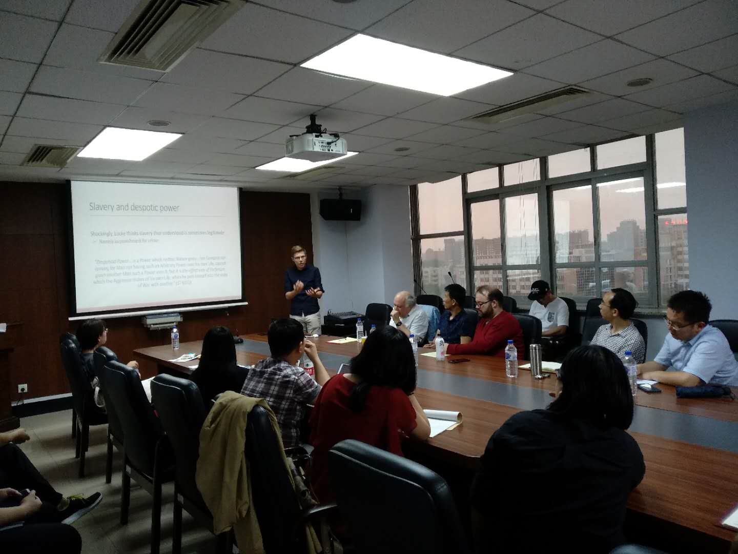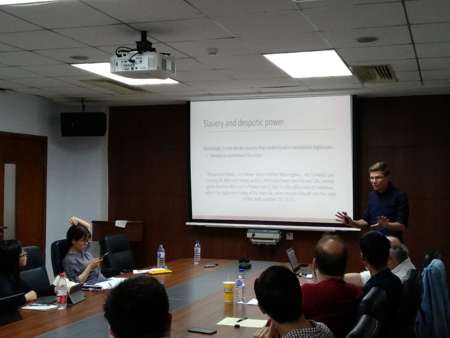 2019年6月13日下午,由304永利集团、304永利集团哲学基础理论研究中心主办的304永利集团国际化示范基地学术讲座第八讲于东荣大厦908会议室举行。荷兰阿姆斯特丹大学助理教授、鲁汶大学博士后、研究霍布斯的著名网站European Hobbes Society发起人Johan Olsthoorn再次给我们带来了一场精彩的讲座。本次讲座的主题是“John Locke's theory of civil government"。讲座由304永利集团晋运锋副教授主持,304永利集团王立教授、Nicholas Rimell老师,行政公司朱万润老师以及来自美国德克萨斯州立大学的哲学与法学教授JohnDeigh也出席了本次讲座。