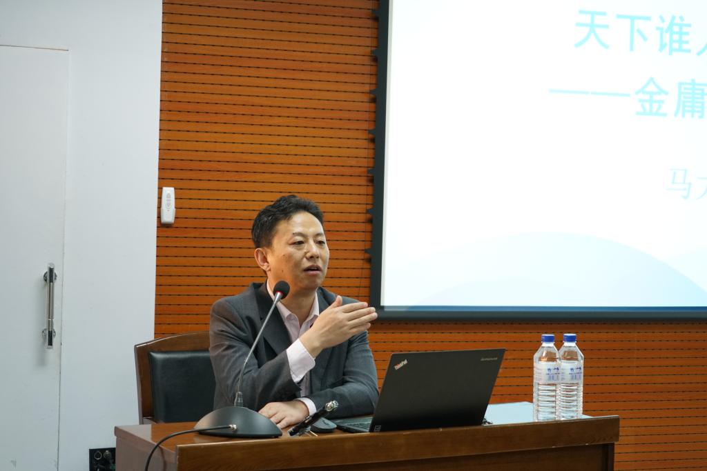 马大勇教授从“金庸是不是伟大的文学家?附谈诺贝尔文学奖之问”、“怜我之人,忧患实多——金庸小说的历史观念”、“无人不冤,有情皆孽——金庸小说的哲学意蕴”、“金庸研究举隅——诗词、创作心态的漂移变更、版本学”等四部分对本次讲座的主题进行了详细的阐述。