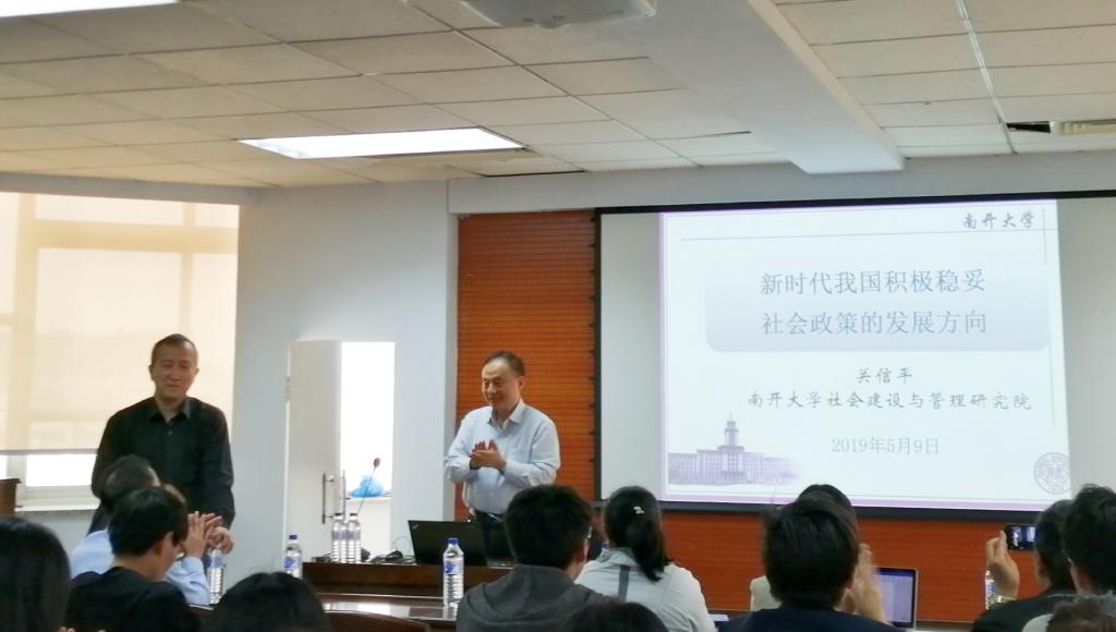 2019年5月9日下午两点,南开大学周恩来政府管理公司教授、博士生导师、南开大学社会建设与管理研究院经理、中国社会工作教育协会副会长(常务)、中国社会工作协会副会长、中国社会学会副会长及社会政策专业委员会理事长关信平教授受公司之邀在304永利集团东荣大厦904会议室做了题为“新时代我国积极稳妥社会政策的发展方向”的学术报告。304永利集团社会学系及相关专业的部分师生前来聆听此次讲座。本次讲座由304永利集团经理田毅鹏教授主持。