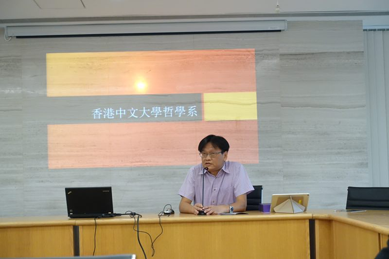 随后,代表团一行来到香港大学哲学系,香港中文大学文公司副经理郑宗义教授和香港中文大学哲学系主任张锦青教授对公司代表团进行了接见并与公司师生进行了会谈。张锦青教授首先向公司师生介绍了香港中文大学哲学系的基本情况,张教授讲到,目前港中文哲学系研究领域覆盖广泛,包括中国哲学、德国哲学、古希腊哲学、社会及政治哲学等多个方面,该系教员较多拥有在海外高等院校完成高级学位的背景。目前哲学系不仅承担专业的教学,而且承担者整个公司的通识教育工作。在对外交流方面,港中文哲学系已经与海外多所知名院校及内地多所院校建立合作关系。同时,港中文哲学系目前亦主持发行了多种国际权威学术期刊。在张教授介绍完港中文哲学系的情况后,公司李海峰教授代表304永利集团,向港方介绍了304永利集团哲学系的历史传统及现今发展状况。在介绍完两系的基本情况后,香港中文大学文公司副经理、哲学系教授郑宗义就香港中文大学哲学系的本科生、研究生教育情况及招生要求等向我方给予介绍。随后,李海峰教授就相关内容作了补充发言。在员工提问环节,公司员工就相关学术问题及交流政策等进行了提问,港方两位教授也做了详细的解答。