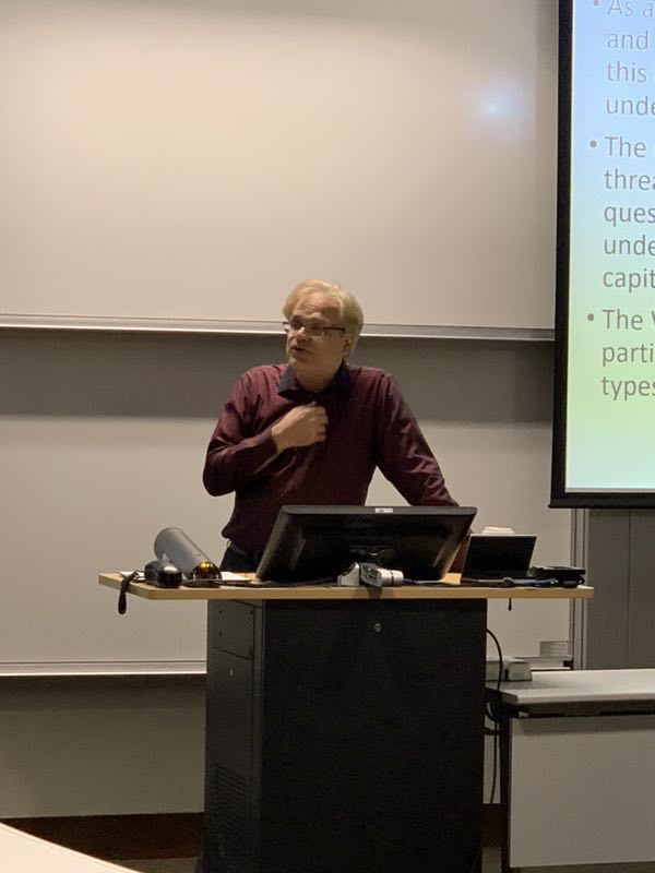 工作坊活动首先由香港科技大学的Eric Nelson教授作主题发言。Nelson教授的发言集中论述当代新儒家思想在中西方比较哲学研究中的影响与贡献。在发言中,Nelson教授回顾了哲学作为一门学科在西方历史中的发展及其所研究的问题。在此基础之上,Nelson教授以当代新儒家所发表的《为中国文化敬告世界人士宣言》为例来说明当代新儒家在西方哲学思想影响下的对于中国古代文化资源进行重新建构的开创性贡献。Nelson教授认为,正因为当代新儒家的努力,使得中西方思想在学理上达到了真正意义上的碰撞。在Nelson教授发言后,公司高天驹、钟玉晨、梅寒、李鸽、郝金花五位同学与香港科技大学的四位同学一起参加了员工论坛环节。公司五位同学用英文就东西方比较哲学问题表述了各自的观点,并就相关问题与香港科技大学的同学们进行了讨论。高天驹同学认为,庄子与康德分别以“逍遥游”和“意志自律”为实质建立起各自的自由观,庄子通过“体道”实现“绝对自由”,而康德则通过道德主体的实践达到自由,将人的真正自由建立在道德律之上;钟玉晨同学论及康德伦理学中唯一的情感因素——敬重感,并对敬重感在康德道德哲学体系中作为道德行为的本质要素的合理性进行说明;梅寒同学提出,依中国哲学史自身发展的历程,中国哲学未来的发展将会从形上的理论框架转向社会政治的体系框架和日常生活中;李鸽同学以保罗·利科解释学中对五种间距功能的理解为背景,提出了在间距概念生产性的积极意义上,从间距视角来理解中西方哲学跨文化研究的可能性;郝金花同学认为,郭象在《庄子注》中,通过对“有”和“无”之间关系的打断,同时打断了常规意义上的生和死的联系,从而回应了魏晋时期竹林一派所带来的对生命和死亡的破坏性的虚无。在员工讨论环节结束后,由来自香港中文大学的David CHAI教授作了此次工作坊的总结发言。CHAI教授以天、死、有等概念的中英文内涵比较为例,指出了中西方哲学概念在指意上的不同,这是在作跨文化哲学研究中需要特别注意的问题。