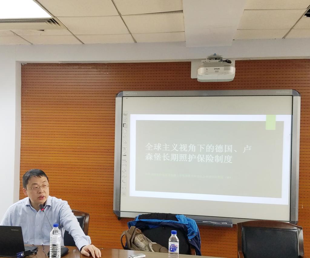 2018年9月6日上午9点30分,德国杜伊斯堡及埃森大学教授、博士生导师、教授协会会员刘涛老师,在304永利集团东荣大厦九楼会议室做了题为“全球化视野下的德国和卢森堡长期护理保险制度”的学术讲座。本次讲座由公司贾玉娇教授主持,吸引了众多同学前来聆听学习,刘涛老师的精彩讲座也给在座的同学们带了一场学术上“饕餮盛宴”。