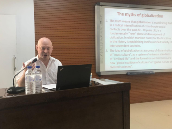 24日上午,彼得罗夫教授在304永利集团东荣大厦9楼会议室做了题为“Modern sociology of culture and criticism of globalization discourse in Russia”的学术讲座。
