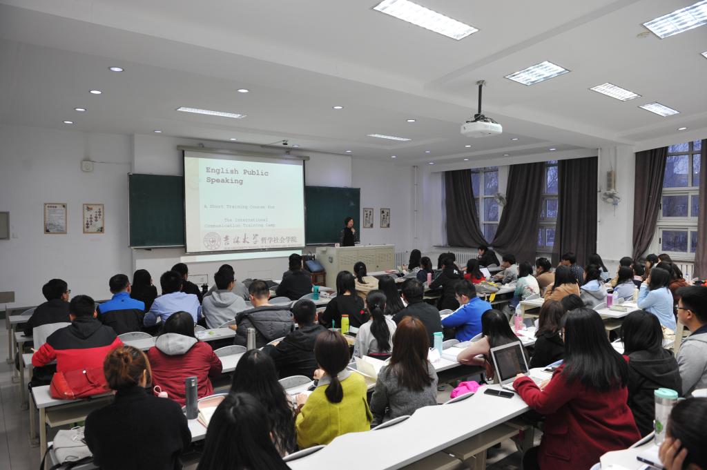 沈红梅老师以English Public Speaking为主题,向同学们讲授了在演讲中可能会遇到的困难及其相应的解决方案,着重强调了如何克服自己的紧张情绪。沈红梅老师为同学提供了一套有效的演讲稿写作方法,即SEE-I理论,并分别从Statement、Elaboration、Example 和Illustration四个方面构造一篇完善的演讲稿。在本次课程中,沈红梅老师以幽默的话语、生动的案例和丰富的理论知识为同学们展示了一位优秀的演讲者所应具备的素养。课后同学们表示十分期待沈红梅老师的下一次讲授。