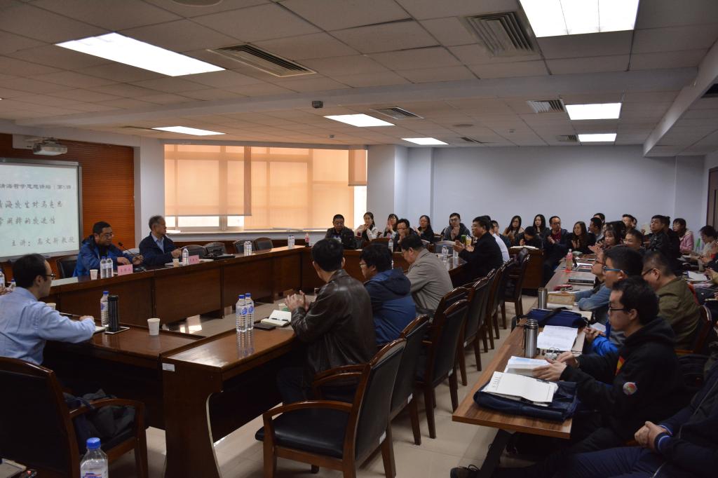 高文新教授的讲座风趣幽默,语言通俗易懂,见解深刻独到,胡海波教授和吴宏政教授都评论说,讲座使我们进一步加深了对高清海先生哲学思想体系以及马克思哲学本身的深入理解。在互动环节中,在场的师生们纷纷提出自己的问题,高文新教授认真聆听相关问题,并对大家的疑惑之处一一进行了解答,现场气氛十分热烈。高文新教授以清晰明了的思路、生动有趣的语言、颇具年代感的背景故事为参与此次讲坛的老师和同学们带来了一场思想的盛宴,使现场听众从另一个角度加深了对高清海先生哲学思想的了解。