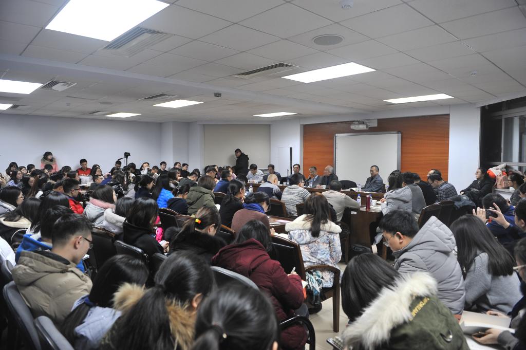 中心主任孙正聿教授高度赞扬了张盾独特的学术思想,认为这与张盾教授特殊的生命体验和理论资源的凝炼密不可分。张老师为学为人的至真至纯与张老师的学术思想息息相关。张盾教授首先引用了王国维的三境界说来形容自己的哲学人生,他讲到哲学的学习路途非常遥远,过程非常艰辛,成果非常美好!张盾教授就“如何心安理得”谈了自己对哲学学科的看法和态度,他提出哲学学科是人文学科中最美最壮丽的学科,学习哲学是一种对美好的感受过程。哲学的学习过程是非常艰苦的,需要广泛的阅读和勤奋的写作过程,他强调要有精益求精、不断磨练的工匠精神,如此才能扎实自己的理论根基,阐发真正有学术分量的见解。其次,张盾教授向在座的师生讲述了五部对他影响最大的著作,分别是康德的《纯粹理性批判》、胡塞尔的《纯粹现象学通论》、海德格尔的《存在与时间》、维特根斯坦的《哲学研究》。他指出有了对西方经典著作的阅读经历,不但有助于对马克思主义哲学的理解,也更能体会到马克思主义哲学对人类命运的关注,实现从理想主义到现实主义的过渡。