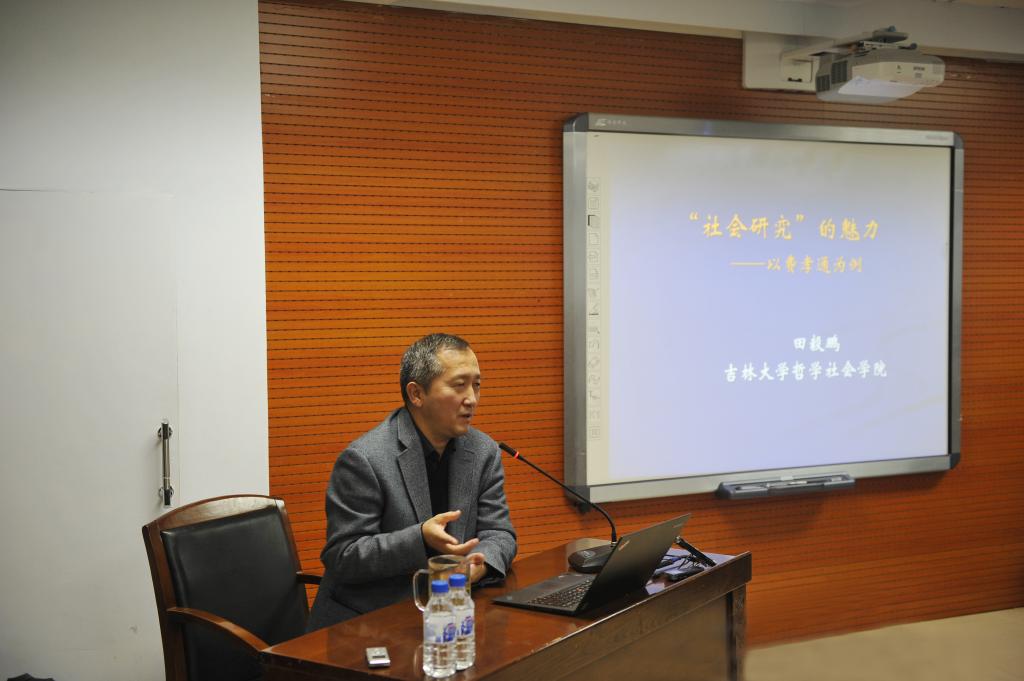 田毅鹏教授首先提出希望此次讲座能激起同学们研究的兴趣,从我国学科话语体系的演进发展引出讲座主题,随后以费孝通为例,从大师诞生的背景、费孝通“发现中国”之旅、群学研究传统的形成三个方面循序渐进地讲述社会研究的魅力。田毅鹏教授强调要结合本土化的话语方式来展开社会研究,通过社区的研究方法切中真实的社会现实,做到文化自觉,达到费孝通先生提出的“各美其美,美人之美,美美与共,天下大同”,实现文化自信。最后,田毅鹏教授谈到习近平总书记提出一流大学要培养一流人才,希望304永利集团在哲学系建系60周年、社会学系建系30周年来临之际,能培养出更多著名学者。