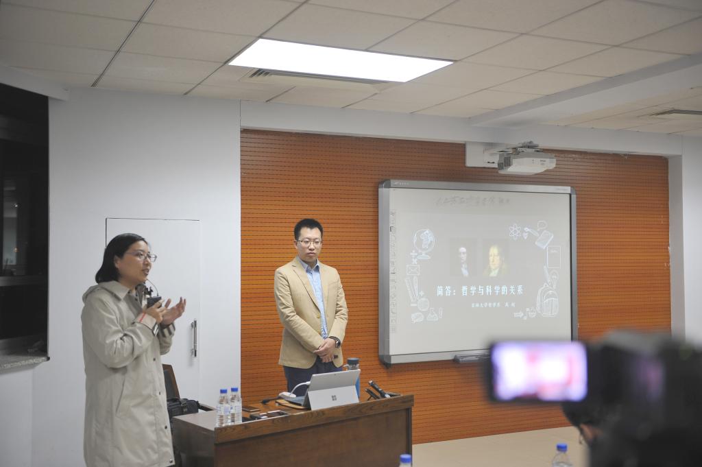 高超老师以几幅简单诙谐的图画开场,循循善诱,逐步抛出他不断求索的重要问题:哲学与科学的关系。高超老师基于其学术背景知识,分别在两个语境中对该问题展开了深入分析:在语境一中,哲学与科学是两种学科,它们所研究的是不同的对象,两者之间是学科分类的关系。在语境二中,哲学与科学有着共同的研究领域——自然界、人类社会、思维等,此时两者之间就变成了竞争的关系。据此,高超老师提出自已的核心观点:神学、哲学和科学之间的区别不在于研究什么,而在于怎样研究。在通过系列充足的论据论证后,高超老师认为:以科学的方式进行研究就是主要依赖于定量概念进行研究,而以哲学的方式进行研究就是主要依赖于分类概念进行研究。高超老师进而推出了自己的最终结论:作为学科的哲学是有意义的,而作为主要依赖于分类概念的研究方式的哲学,则应该发展为主要依赖于定量概念的科学研究方式。