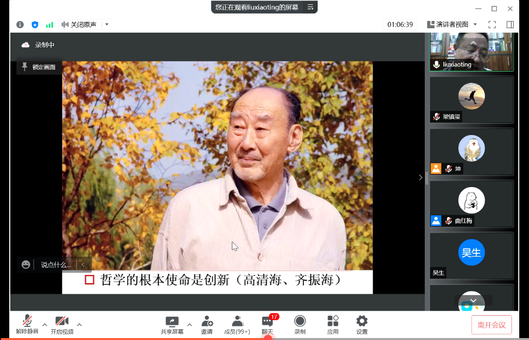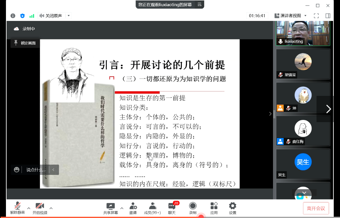 2022年04月06日19时,公司“2022年304永利集团学术教育提升工程”系列讲座的首讲依托“腾讯会议”线上平台开展。本期讲座的主题为“漫议哲学和哲学家”,主讲人为北京师范大学哲学公司刘孝廷教授,主持人为公司曲红梅教授。