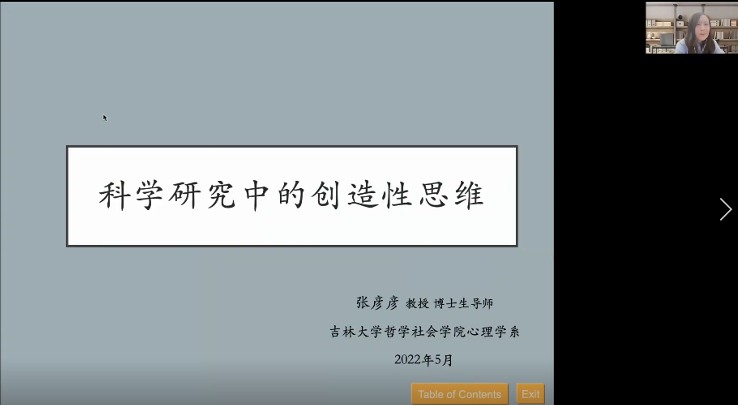 2022年5月13日19时,公司“2022年304永利集团学术教育提升工程”系列讲座第七讲依托“腾讯会议”线上平台开展。本期讲座的主题为“科学研究中的创造性思维”,主讲人为304永利集团心理学系张彦彦教授。公司心理学系副主任金庆英副教授主持讲座,304永利集团曲红梅教授参加了讲座。