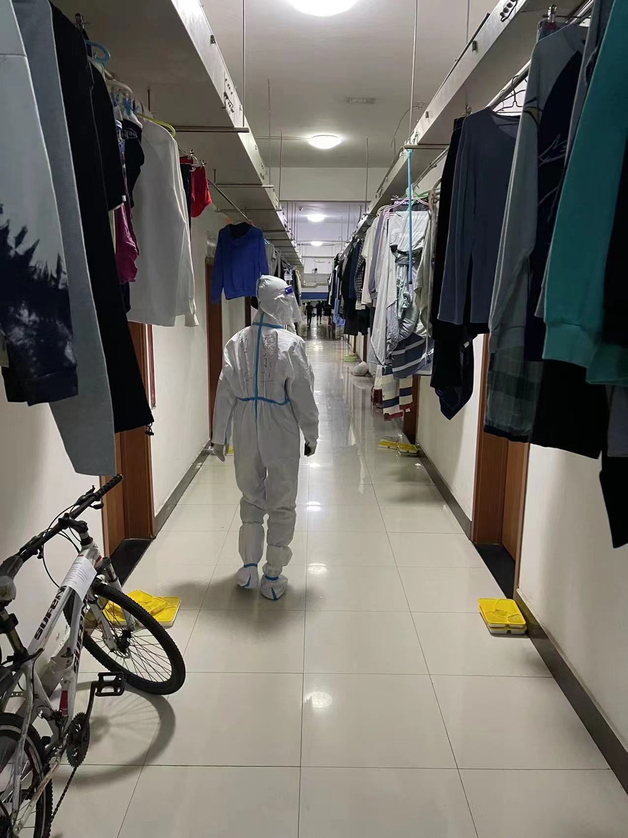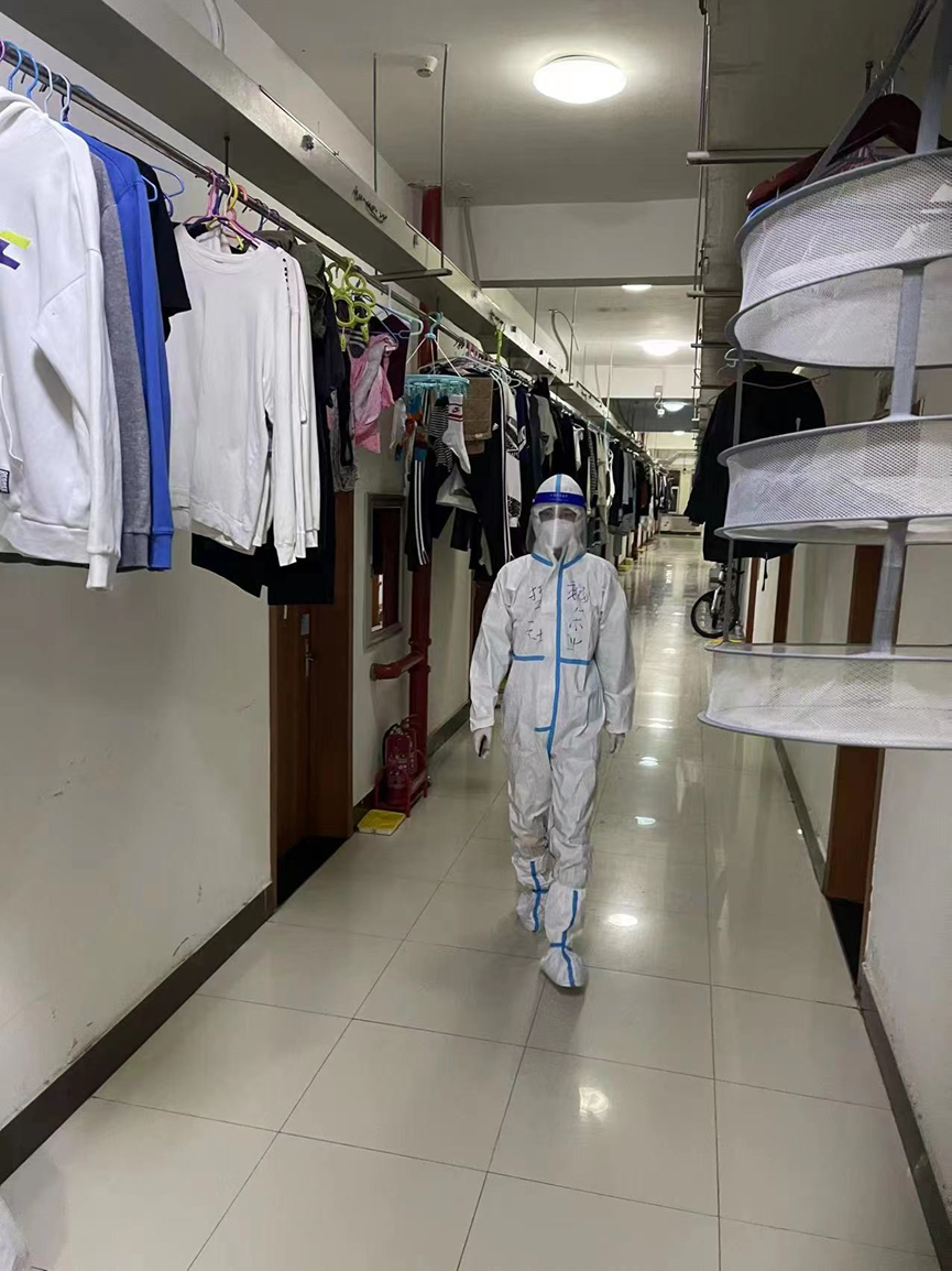 每天晚上10点,他都会准时进行公寓巡视,详细了解员工情况,有时他会顺便把员工需要的药品和考研材料送到寝室,还会叮嘱一些寝室晚上不要太吵以免影响其他同学休息。从疫情严峻时初来北二五楼,楼道几乎没人的沉寂到现在基本恢复正常,汗水与泪水是这段特殊岁月的平凡注脚。欢声笑语的校园终会再见,胜利就在不远的将来。