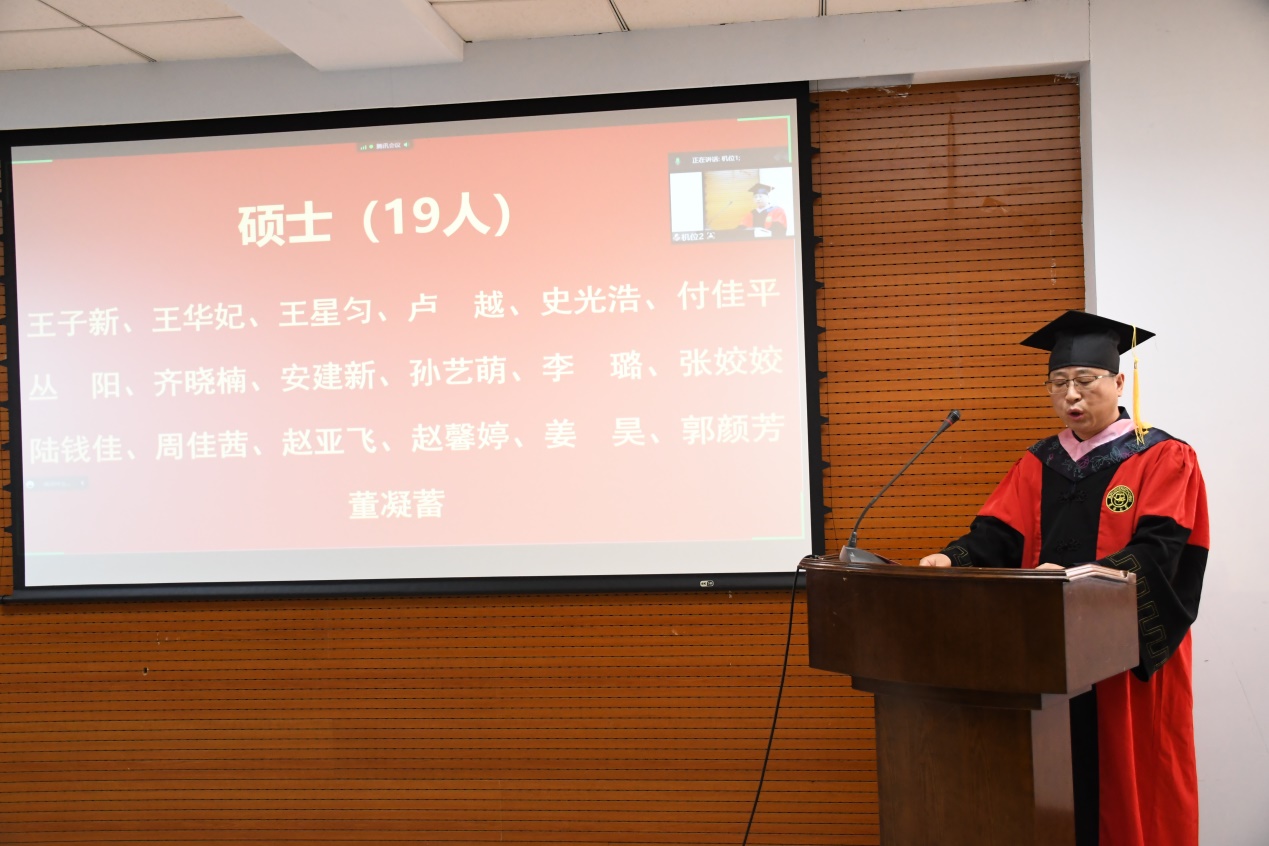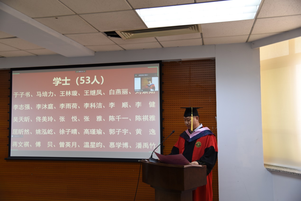 304永利集团经理田毅鹏、党委副书记赵洁、党委副书记兼副经理刘培强、副经理曲红梅、副经理芦恒、副经理王福生、哲学系副系主任高超、社会学系主任董运生、心理学系主任张彦彦、劳动与社会保障系主任董才生、公司教师代表社会学系教工党支部书记吴海琳,以及部分毕业生代表现场参加了典礼。同时,部分教师、全体毕业生通过线上会议的方式参加了典礼。典礼由公司党委副书记兼副经理刘培强主持。