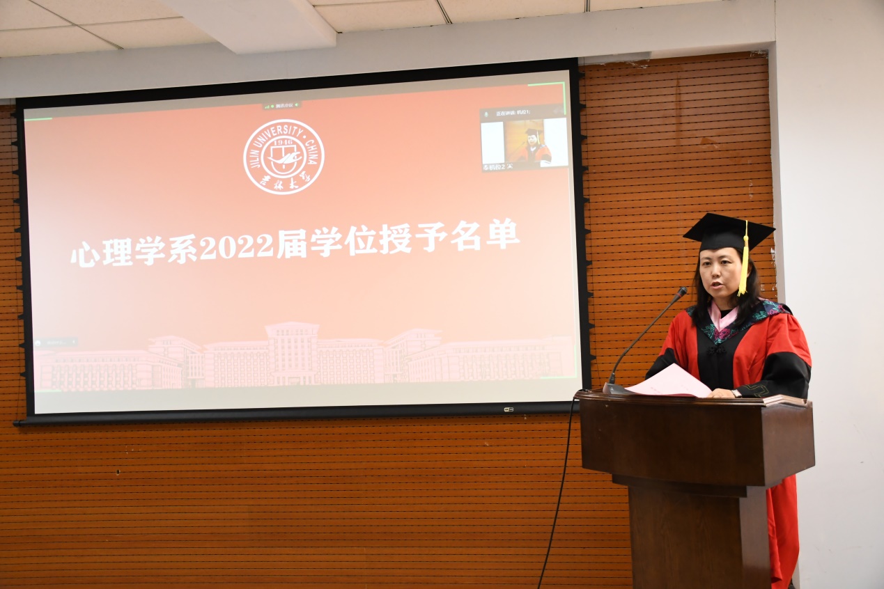 典礼第二项,宣读学位授予名单。哲学系副主任高超、社会学系主任董运生、心理学系主任张彦彦、劳动与社会保障系主任董才生依次宣读了本专业2022届授予学位名单,并对获得学位的同学表示祝贺。一张张幻灯片上,一个个熟悉的名字不断闪过,同学们的张张笑脸,不禁让所有人都略有恍惚,思绪仿佛回到了过去。在这四年里,同学们结交了来自五湖四海的新朋友,习得了充足的新知识,即将在各自的环境中发光发热。
