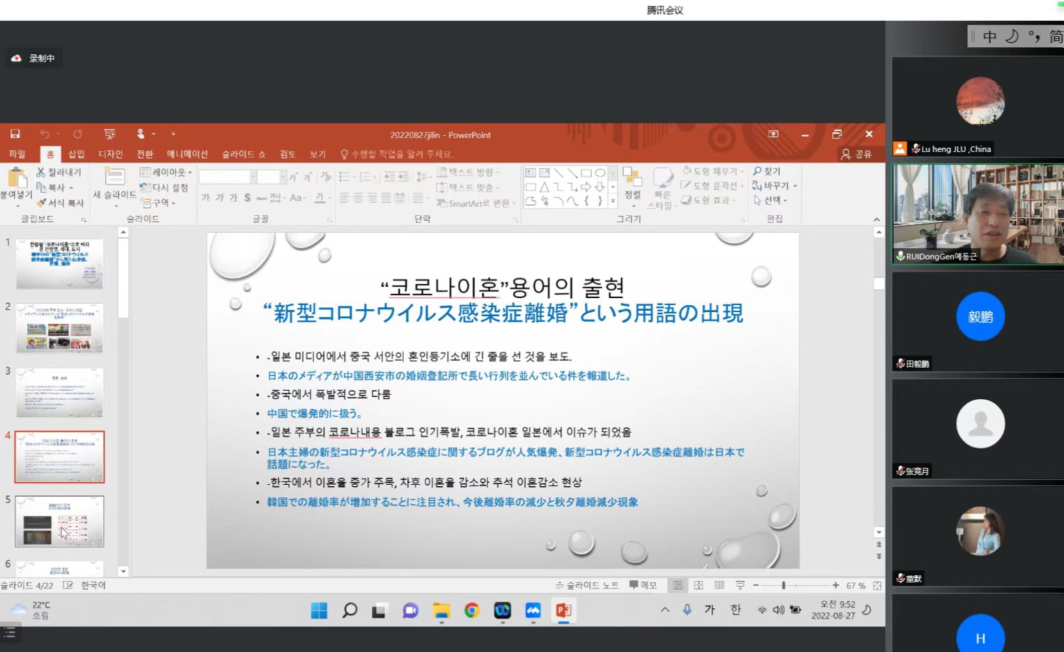 其间,与会者在四个环节的问答环节,分别进行深入讨论。最后,芦恒教授进行总结发言并对与会者表示感谢。此次线上研讨会在东亚城乡社会转型背景下促进青年学术交流,拓宽城乡文化社会转型研究的理论视野,深化了东亚青年学者和研究生之间的沟通和互动。