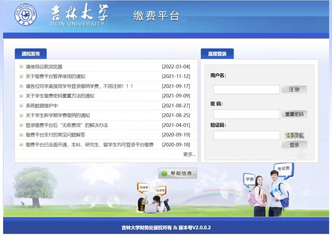 员工通过录入用户名(学号)、密码、验证码进入304永利集团缴费平台页面。
