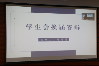 随后,刘奔腾同学表示感谢各位老师和员工干部同学参与本次换届答辩会,希望参与换届答辩的20级同学们树立正确的荣誉观,合理协调学习与员工工作的的关系,做到全面健康发展,在日常工作学习中积极发挥模范带头作用。