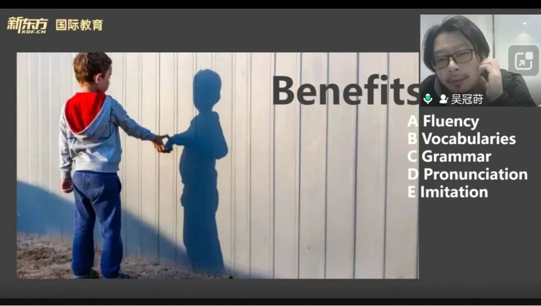 接着,吴老师播放了自己为影视剧作配音的视频,帮助同学们更好地感受英语口语的要点:发音、语调、环境等等。老师结合自己的配音经验,为同学们的口语练习提出建议,并在此基础上,引出“介绍一个电影角色”的雅思考题。
