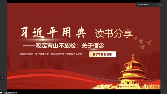 化学公司的张超越同学向与会同学们分享了自己对《习近平用典·信念篇》的阅读感悟。“志之所趋,无远勿届,穷山距海,不能限也。志之所向,无坚不入,锐兵精甲,不能御也”,这是人为什么要有理想信念的最好回复;“位卑未敢忘忧国”,这是人应树立起怎样的理想信念的最佳解答;“咬定青山不放松,立根原在破岩中。千磨万击还坚劲,任尔东西南北风”,这是人应怎样坚持理想信念的最优方案。