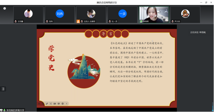 法公司的单莞桐同学为大家介绍了中共一大代表们截然不同的人生。有的人中途掉队,有的人黯然退场,有高洁也有污浊,有忠贞也有背叛。大浪淘沙,让忠诚者更忠诚,这支队伍经过硝烟战火的洗礼和各种艰难险阻的磨练,百年大党正在新世纪以更加崭新的面貌领导中国人民不断夺取新的伟大胜利。