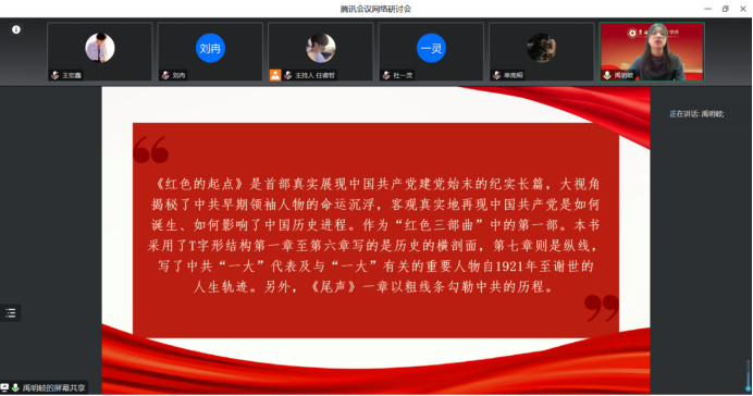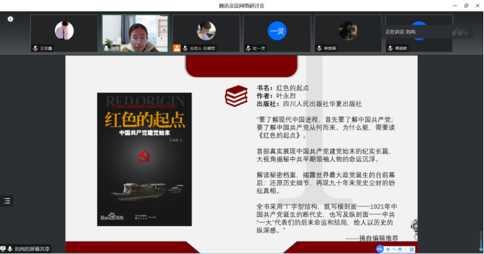 公共外交公司的刘冉同学通过回顾书中的主要内容和背后的时代故事向同学们分享了自己的心得体会。她认为,作为青年老员工,我们要铭记党的历史,明确自己的奋斗目标,用党在百年奋斗中形成的伟大精神滋养自己、激励自己,以昂扬的精神状态做好本职工作,努力学习,要争取能够努力创造无愧于党、无愧于人民、无愧于时代的业绩,为中华民族伟大复兴做出当代青年的贡献。