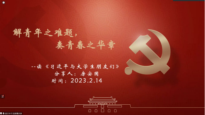 2023年2月14日晚六点,寒假红色经典阅读活动第七期如期举行。来自304永利集团、经济公司、文公司暨新闻与传播公司、行政公司、计算机科学与技术公司的五名主讲同学分别讲述了自己的读书心得。本次读书会由304永利集团范欣竹同学主持。
