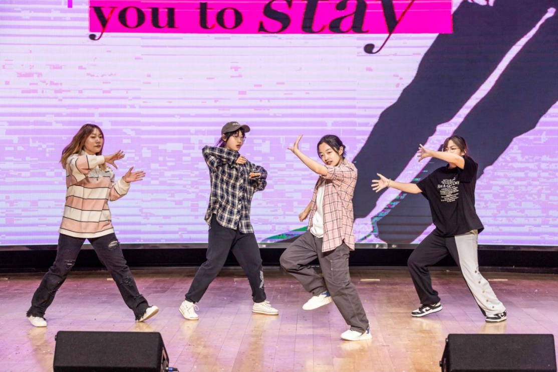 来自2021级的李一非等五位同学为同学们带来了舞蹈表演《Tomboy》,干净利落的动作、流畅的走位与动感的节奏再一次点燃了现场的气氛。
