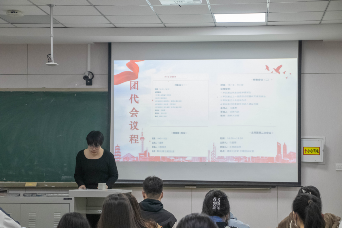 首先,主持人裴璐晓同学通过视频形式引导同学们了解了团代会的举办频次、团代会代表的选拔流程等关于团代会的基本知识,也使得同学们更加明确了公司共青团召开此次团代会的必要性。