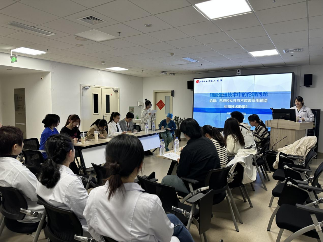 在辩论赛期间,吴乙时医生通过自身实操的案例引出主题:“己绝经患者应该/不应该采用辅助生殖技术助孕”。本次比赛正方由来自吉大二院的覃慧、易鹭和余婉淳同学,以及公司哲学专业胡熙瑞、社会学类专业吴柳荭、应用心理学专业文茹同学组成;本次比赛反方由来自吉大二院的穆星彤、陈施宇同学,以及公司哲学专业刘书源、李祥坤和应用心理学专业杨滟丹同学组成。