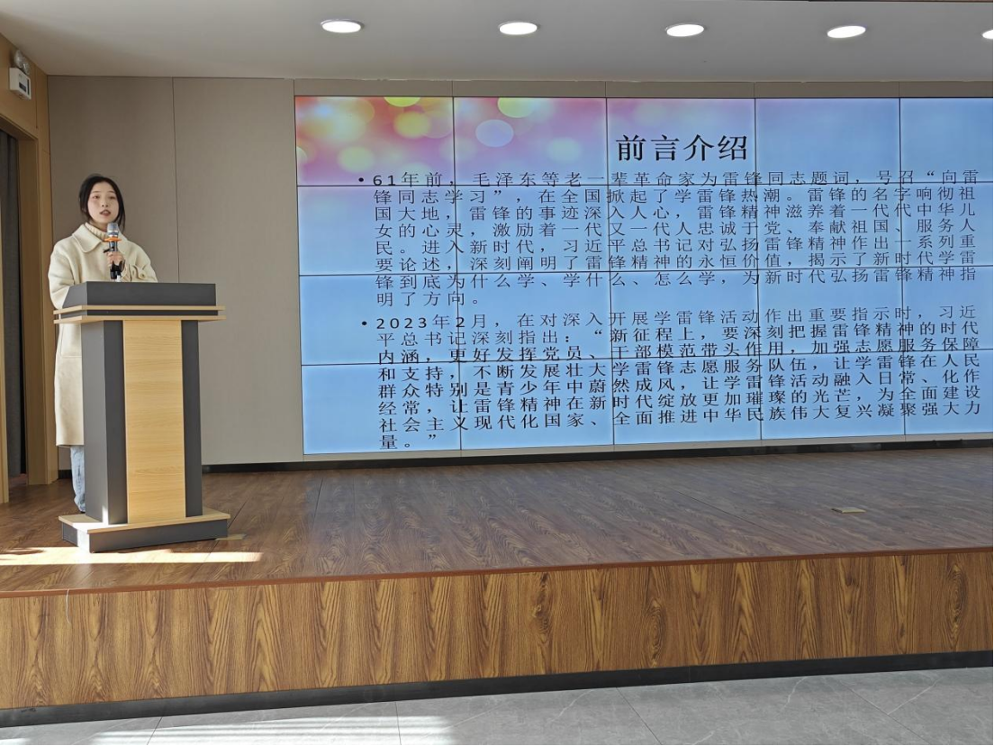 志愿者团队成员张冰洁从实践角度阐述了如何学习、践行、弘扬雷锋精神。我们在工作,学习之中要像雷锋同志那样,如同钉子一般,钉在各自的岗位上,最大程度发挥着光和热。不仅要善于挤出时间学习,提升自己,还要善于钻研,不断的充实所学专业知识,努力成为“高素质、专业化”的青年人才。“毫不利己,专门利人”,真正做到“把有限的生命投入到无限的为人民服务之中去”。