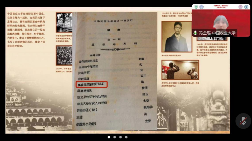 本次活动由全国青马工程学员、304永利集团2020级本科生李慧婷主持,中国农业大学党委理论学习宣讲团博士分团第四届团长、第五届党支部书记冯金璐进行理论宣讲,来自三地四校的员工党员、共青团员们进行心得分享,304永利集团本科生党支部书记、团委负责人宋绍伟老师做总结发言。
