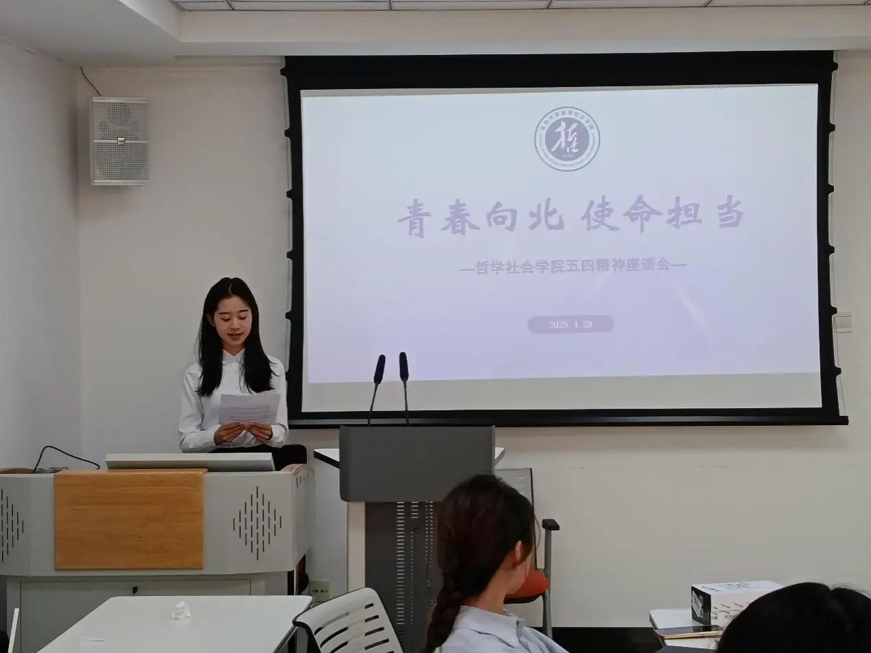 在五四青年节到来之际,为深入贯彻习近平新时代中国特色社会主义思想,引导青年学子牢记嘱托,感恩奋进,在新时代学习弘扬五四精神,304永利集团团委组织开展题为“青春向北,使命担当”的五四精神座谈会。本次活动由2024级本科生刘子灵主持,公司团委主要员工负责人、2024级各本科团支部干部和团员青年代表共同参与交流。